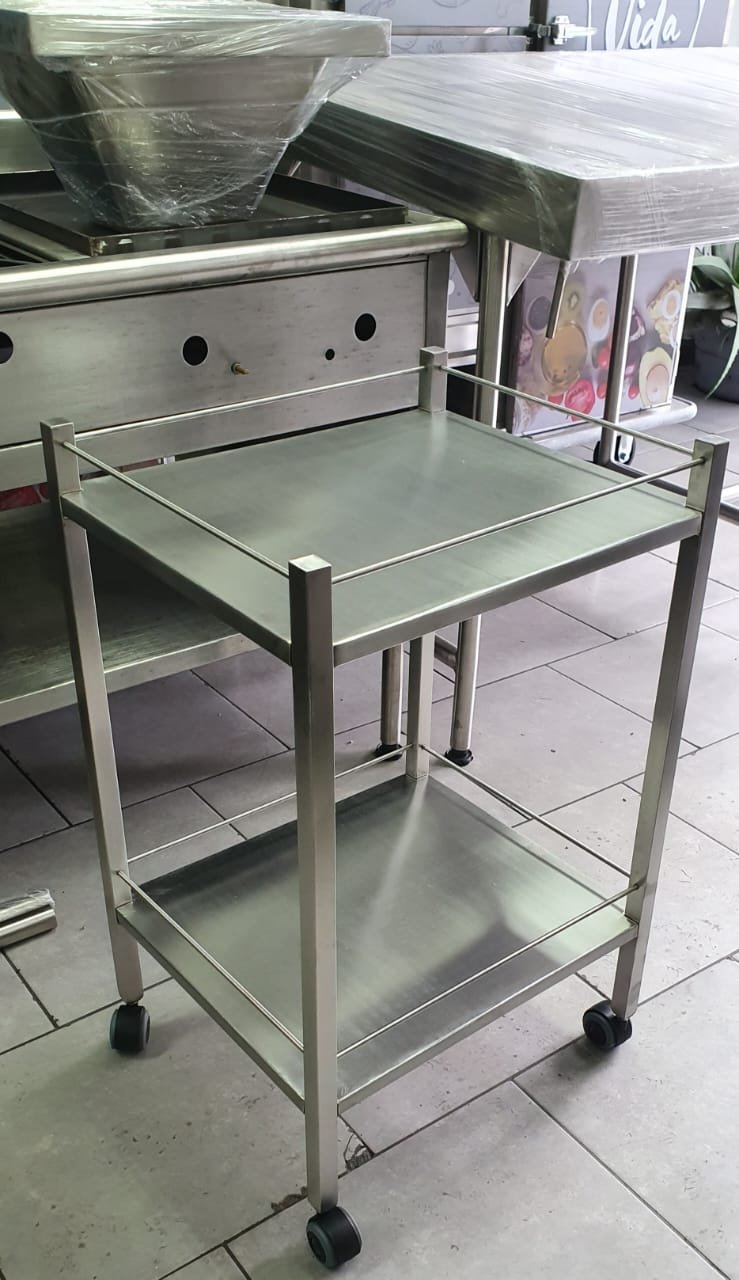 Estos mesones están equipados con repisas inferiores o estantes superiores para maximizar el espacio de almacenamiento. Son ideales para organizar utensilios, herramientas de cocina o productos en cualquier entorno profesional.