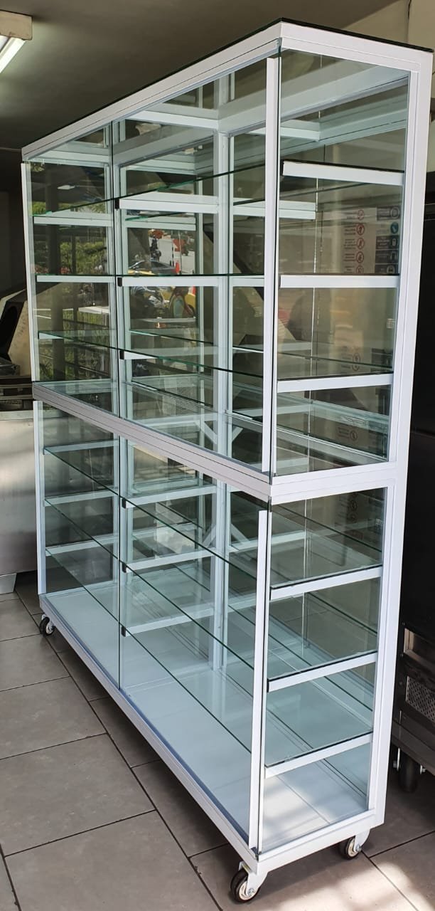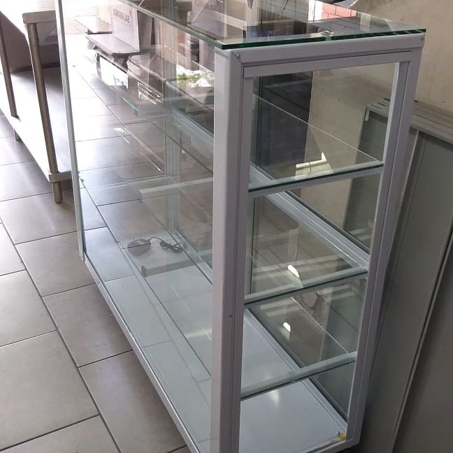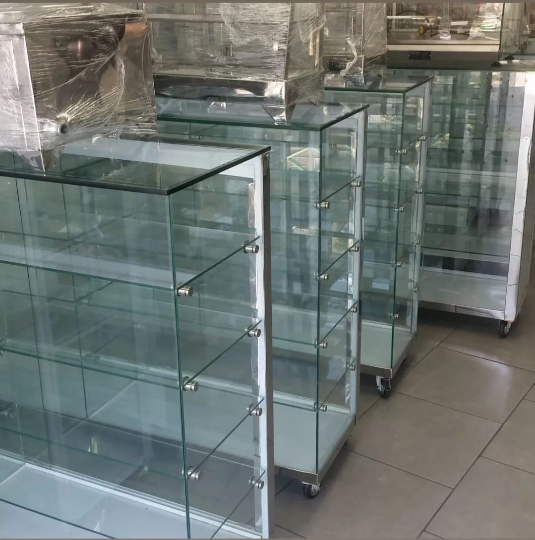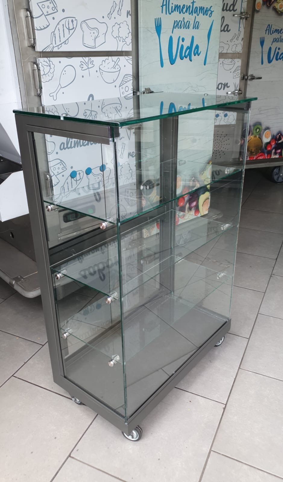 Fabricación en Vidrio Templado y Acero Inoxidable: Nuestras vitrinas están fabricadas con vidrio templado, lo que garantiza una alta resistencia a impactos y durabilidad. Además, utilizamos acero inoxidable y aluminio en la estructura, lo que asegura que la vitrina se mantenga en perfectas condiciones incluso en entornos de alto tráfico.