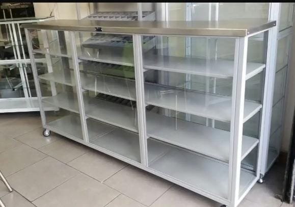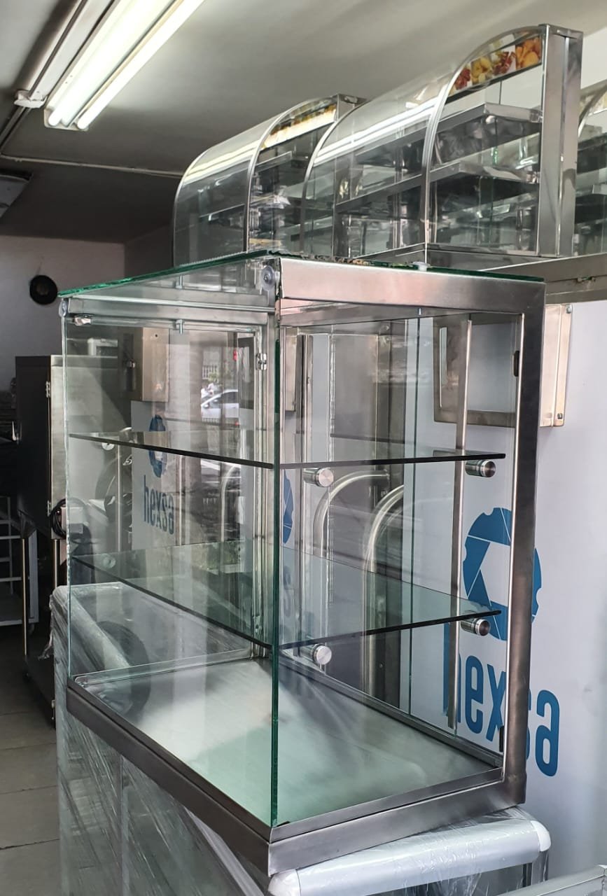 Durabilidad y Fácil Mantenimiento: Los materiales de alta calidad como el acero inoxidable y el vidrio templado aseguran que las vitrinas se mantengan en excelentes condiciones durante años. Además, son fáciles de limpiar y mantener, lo que es ideal para espacios comerciales que requieren vitrinas impecables.